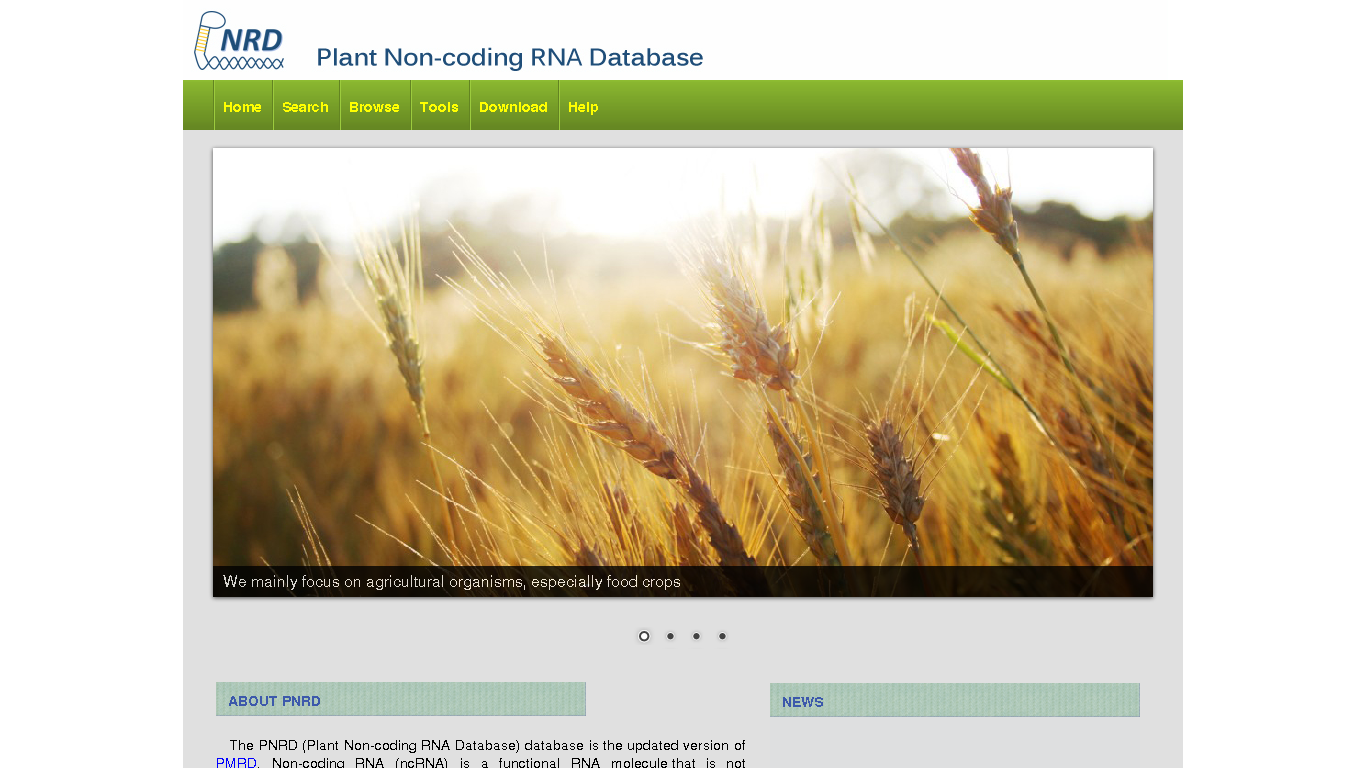 It is the updated version of PMRD. PNRD mainly focuses on plant species. A total of 25739 entries of 11 different types of ncRNAs from 150 plant species were collected. Targets of miRNAs were extended to 178138 pairs in 46 species, while the number of miRNA expression profiles reached 35. Improvements in PNRD are not only the larger amounts of data, but also better service, such as a more user-friendly interface, more multifunctional and browsing options and more background data for users to download.
